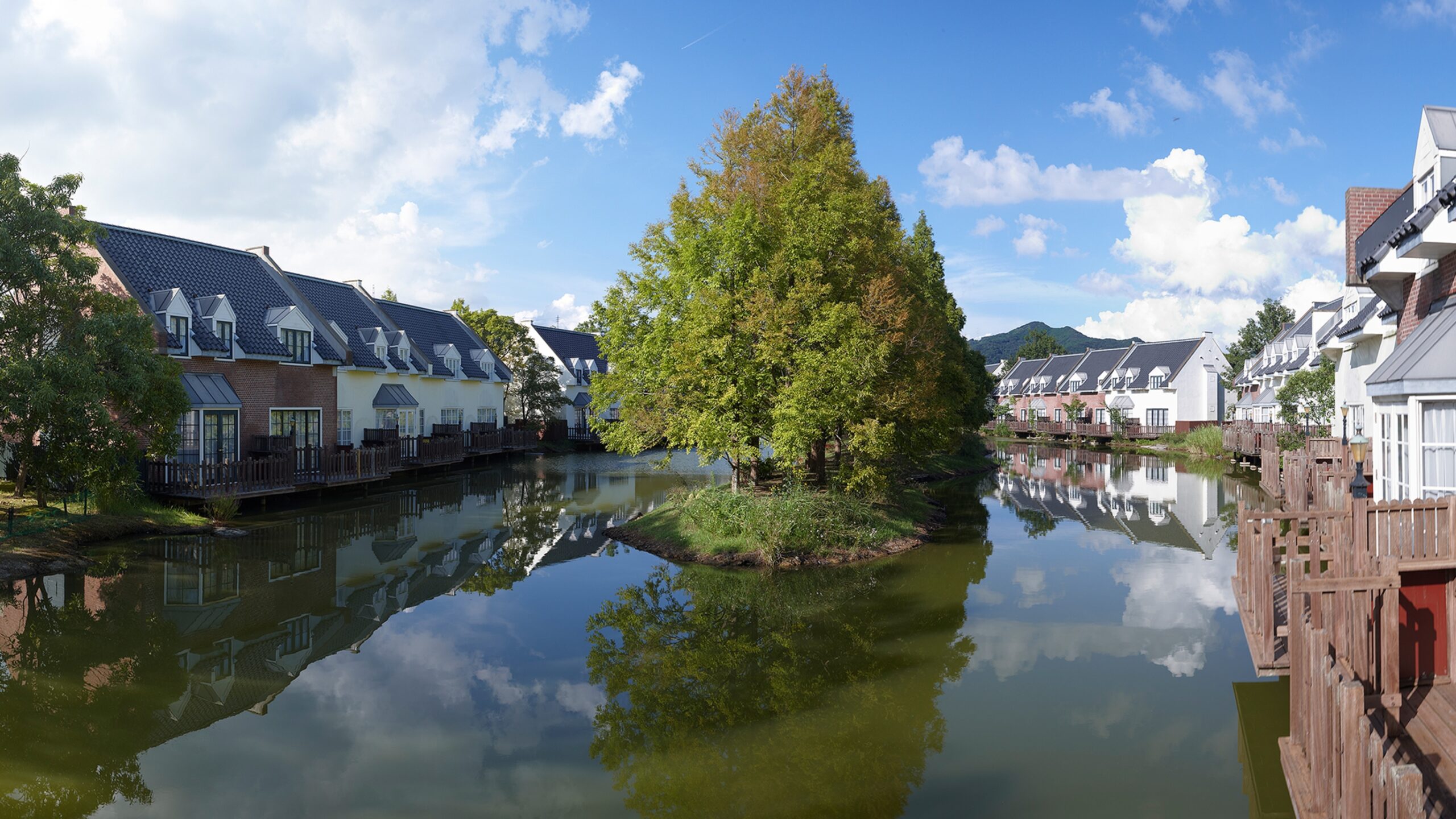 フォレストヴィラは、湖の周りや湖の中の島にコテージが立ち並んでいます。