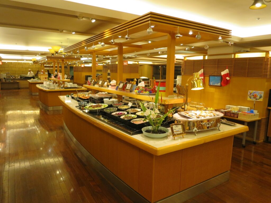ホテルナガシマも朝夕ともにバイキングです。